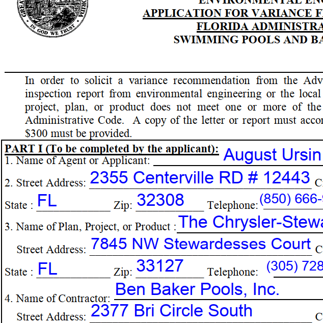 Let us handle the Florida Department of Health's pool variance application paperwork for you.